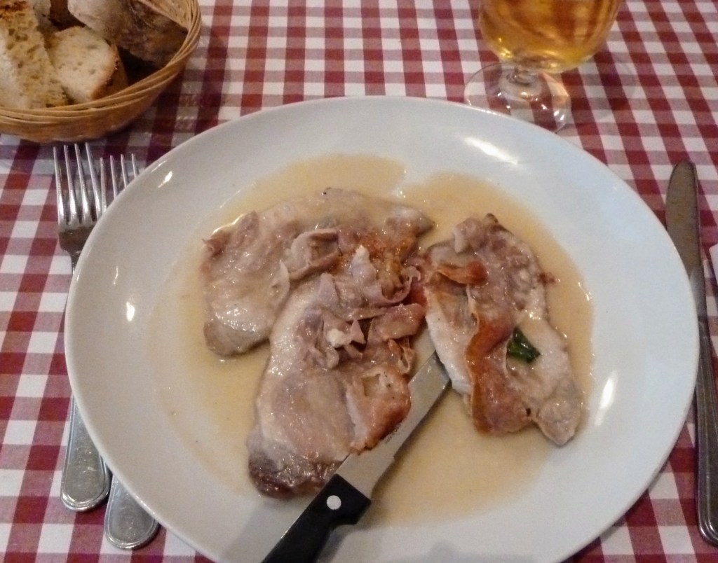 Saltimbocca alla romana is a simple dish that is wonderful in its simplicity. It is (excluding pizza and pasta of course) one of the internationally best known Italian dishes. Its history is unclear, but it is being served at least since end of 19th century. So, when in Rome, eat a saltimbocca, or two. I ate three as I visited Rome three times. Each time I had one in a different place and the one in the top picture I liked best. I ate it 2015 in a small osteria in Trastevere, across the river Tiber, a part of Rome particularly well known for its cafes, trattorias, osterias,…