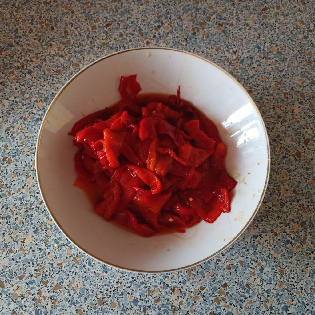I have already written about ajvar, a close relative of pinđur. It is said to originate from Macedonia (North Macedonia 🇲🇰) as well, however the word pinđur is of Hungarian 🇭🇺 origin. Like the internationally better known ajvar, it is popular all over the Balkans, with many local variations, all containing pointy red peppers (crvena rog-paprika in Croatian) and tomatoes (the tomatoes are the main difference to ajvar – ajvar is never made with tomatoes!). Like ajvar, it is commonly made at the end of summer, when ripe and juicy peppers and tomatoes are abundant and cheap in these parts of the world.